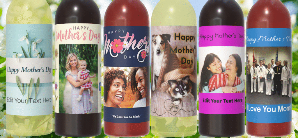 Custom‑labeled wine bottles make a heartfelt, personal Mother’s Day gift she’ll love long after the last sip.