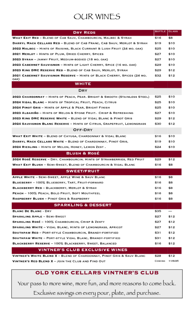 Our Signature Wine & Dine Experiences are the perfect way to elevate your visit to Old York Cellars.